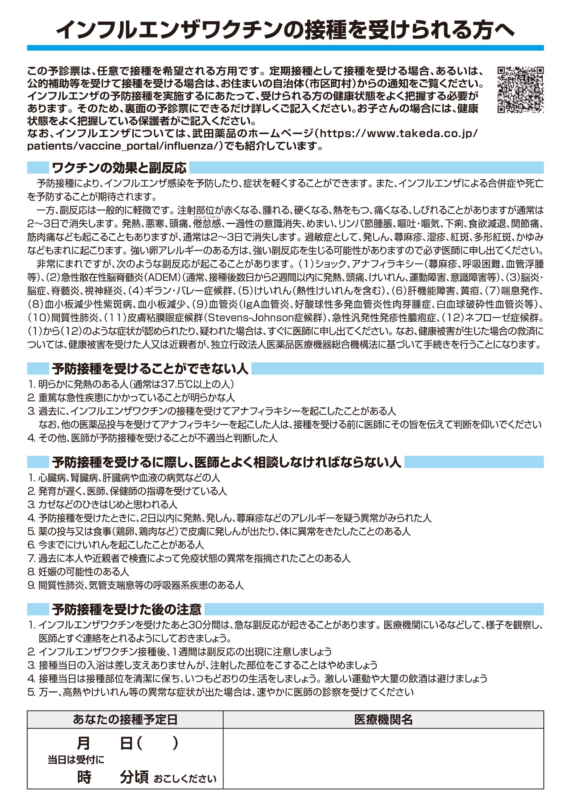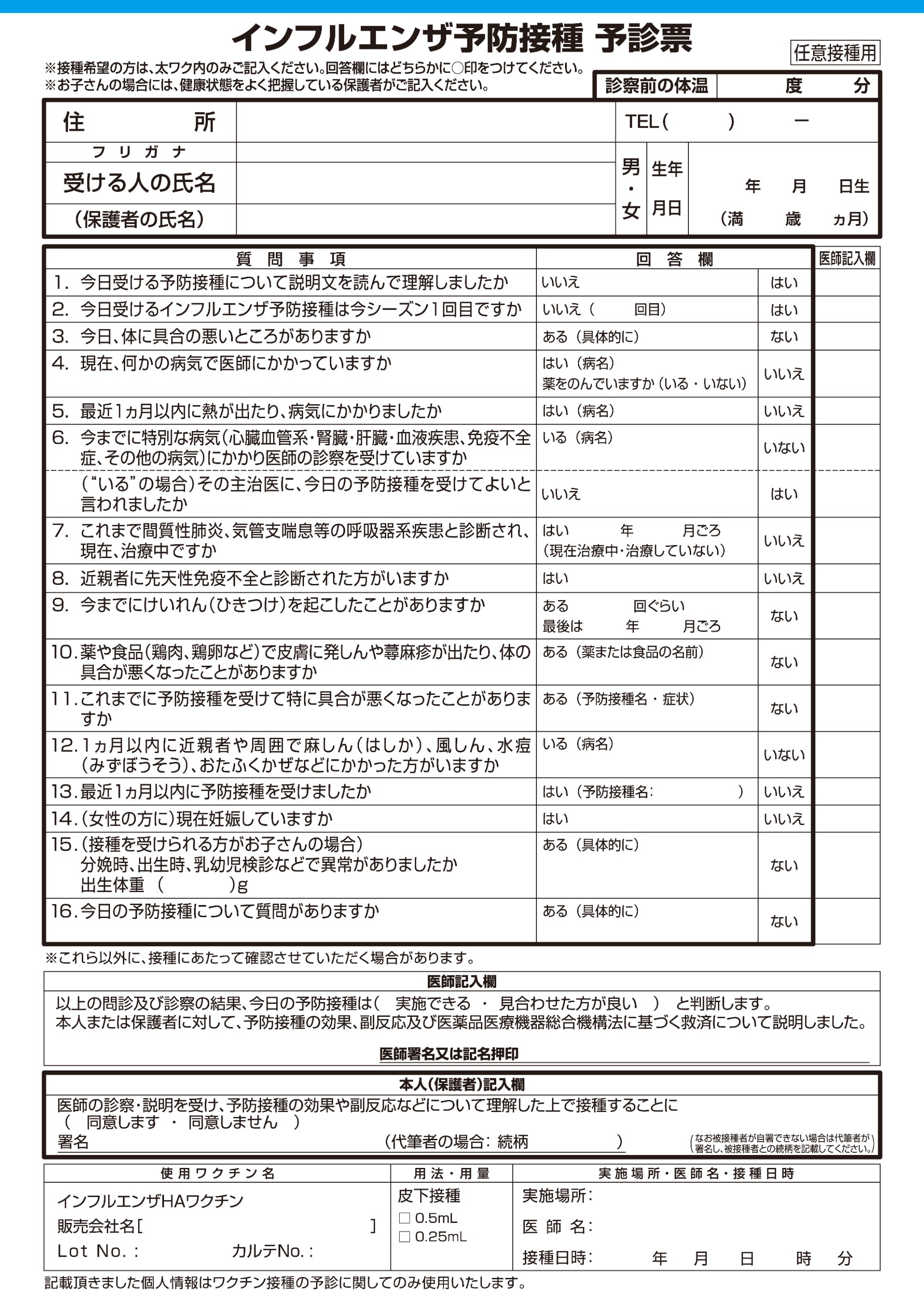 インフルエンザ 予防接種の日時予約は無くなりました 平日5時まで予約なしで接種します